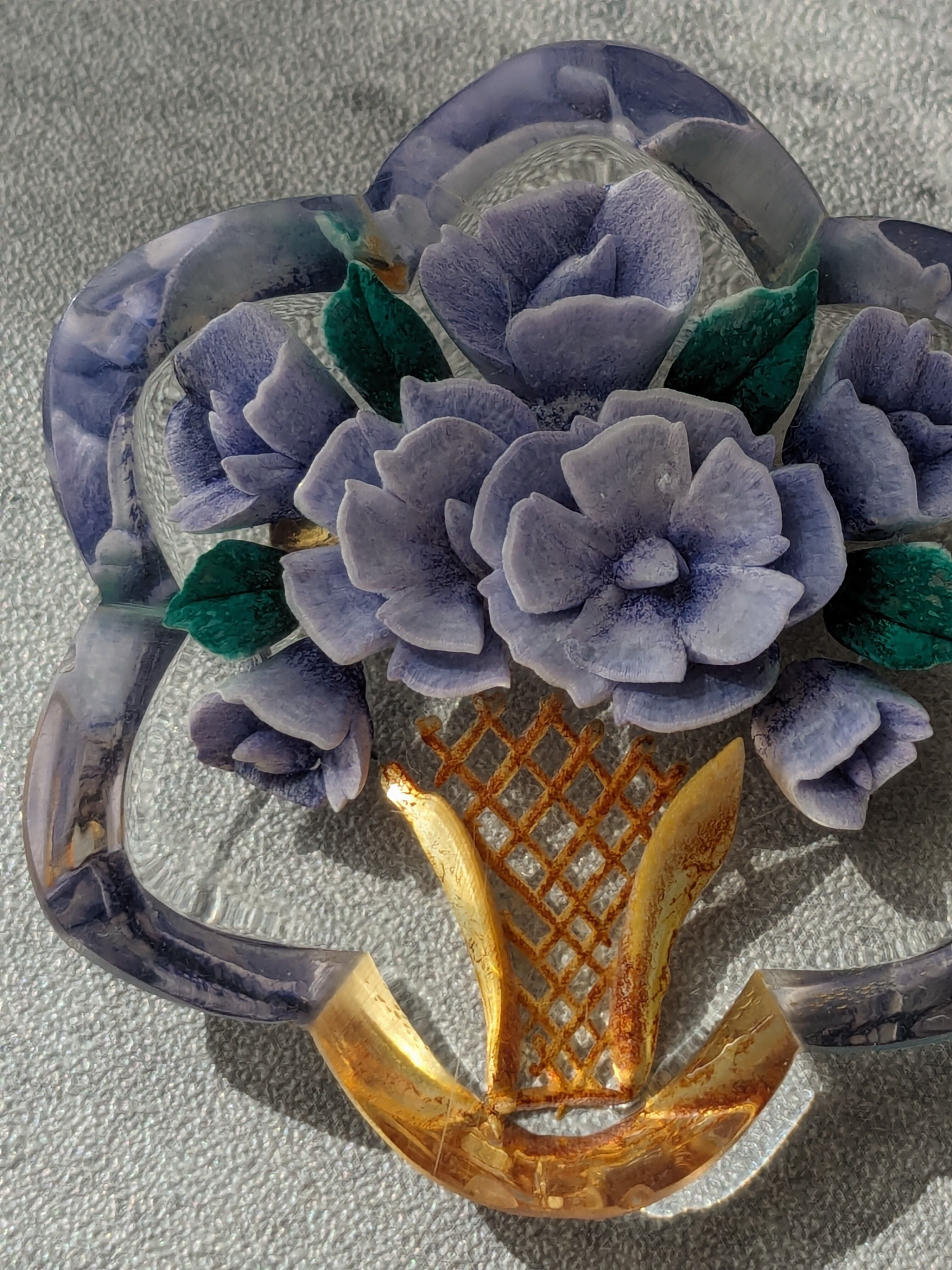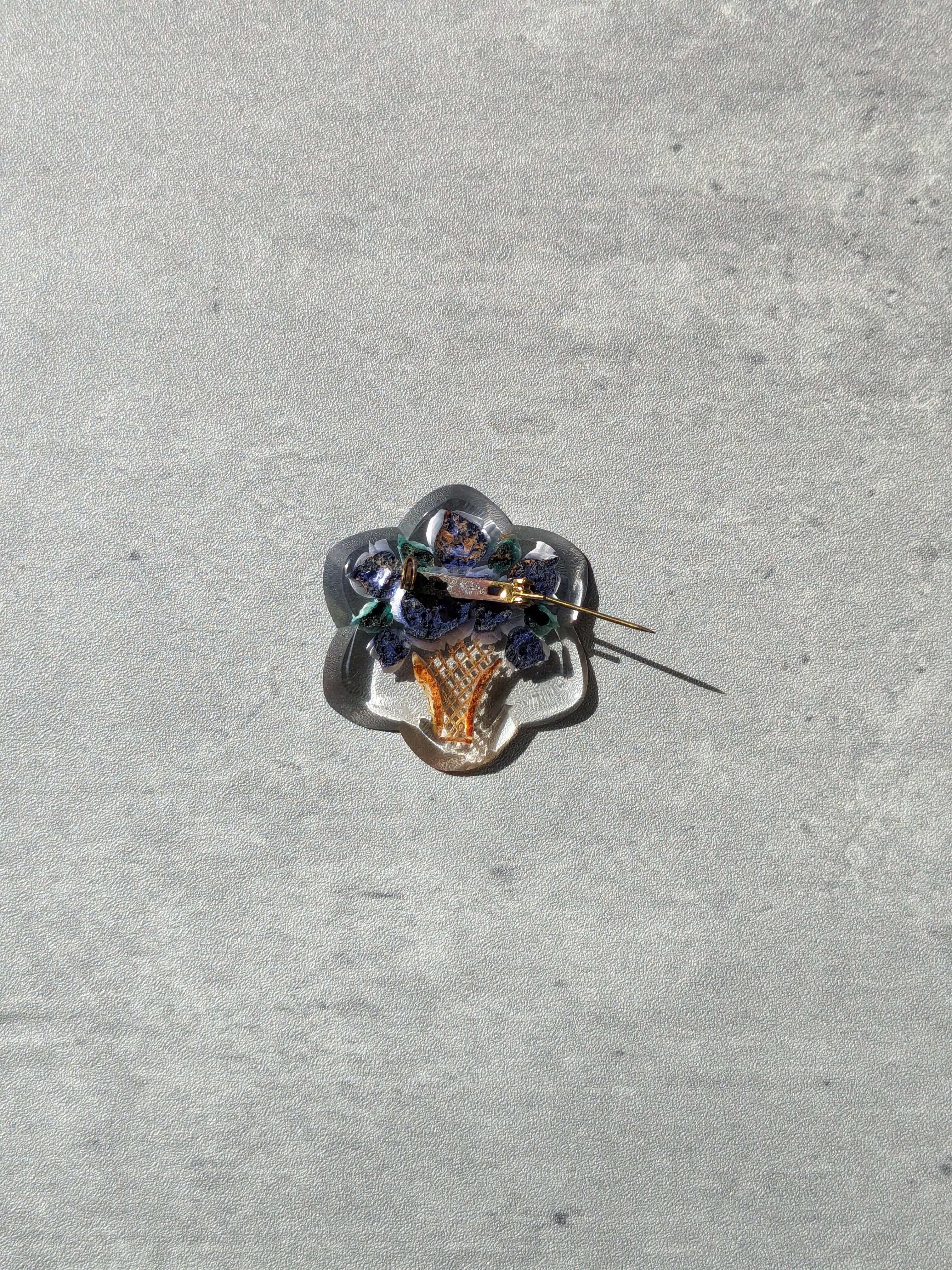 ブルーが色鮮やかなブーケ柄のかわいいブローチです。